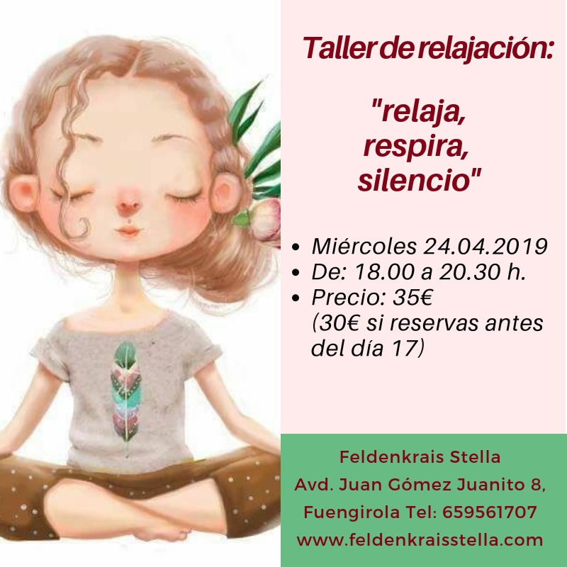 “Relaja, respira, silencio”. Taller de relajación. Miércoles 22 mayo, 2019, de 18.30 a 20.45