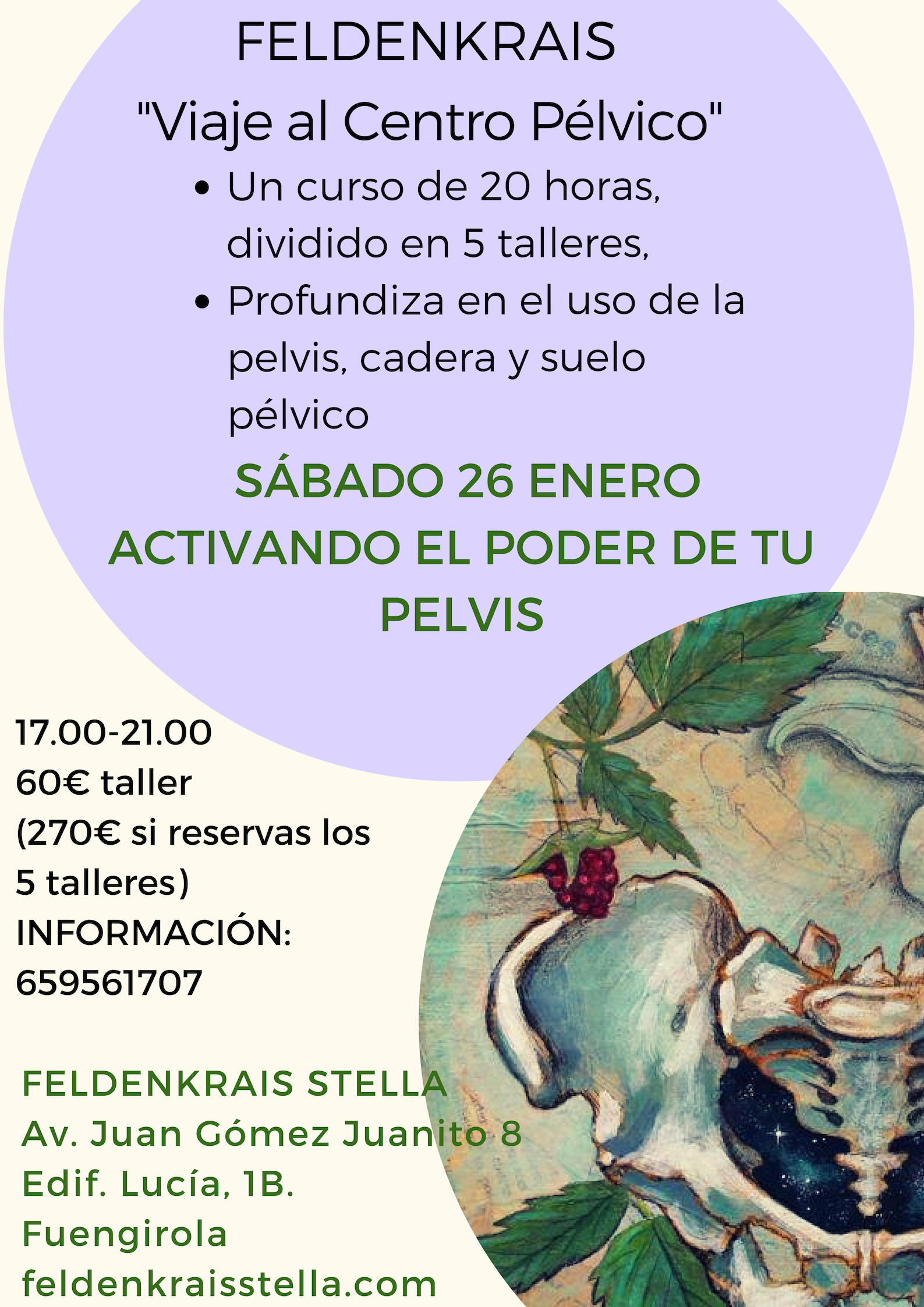 Comenzamos el año con 5 talleres para profundizar en el uso y conocimiento de la zona pélvica. El Método Feldenkrais te abre un nuevo camino a conocer tu ser, tanto si sólo lo practicas para tí, como si eres profesor de otras disciplinas (pilates, yoga,etc) y lo usas en tus clases. Tomar conciencia al detalle,…